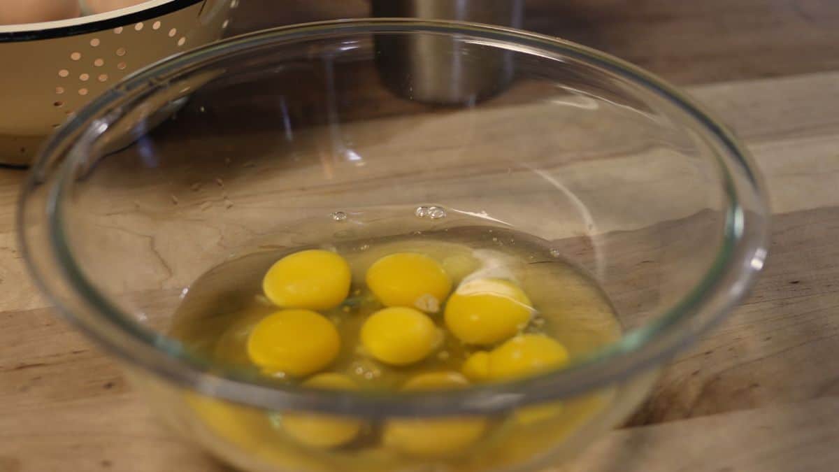 Eggs – We use the eggs from our hens but during the winter months when they aren’t laying, we use eggs that we froze during the spring.