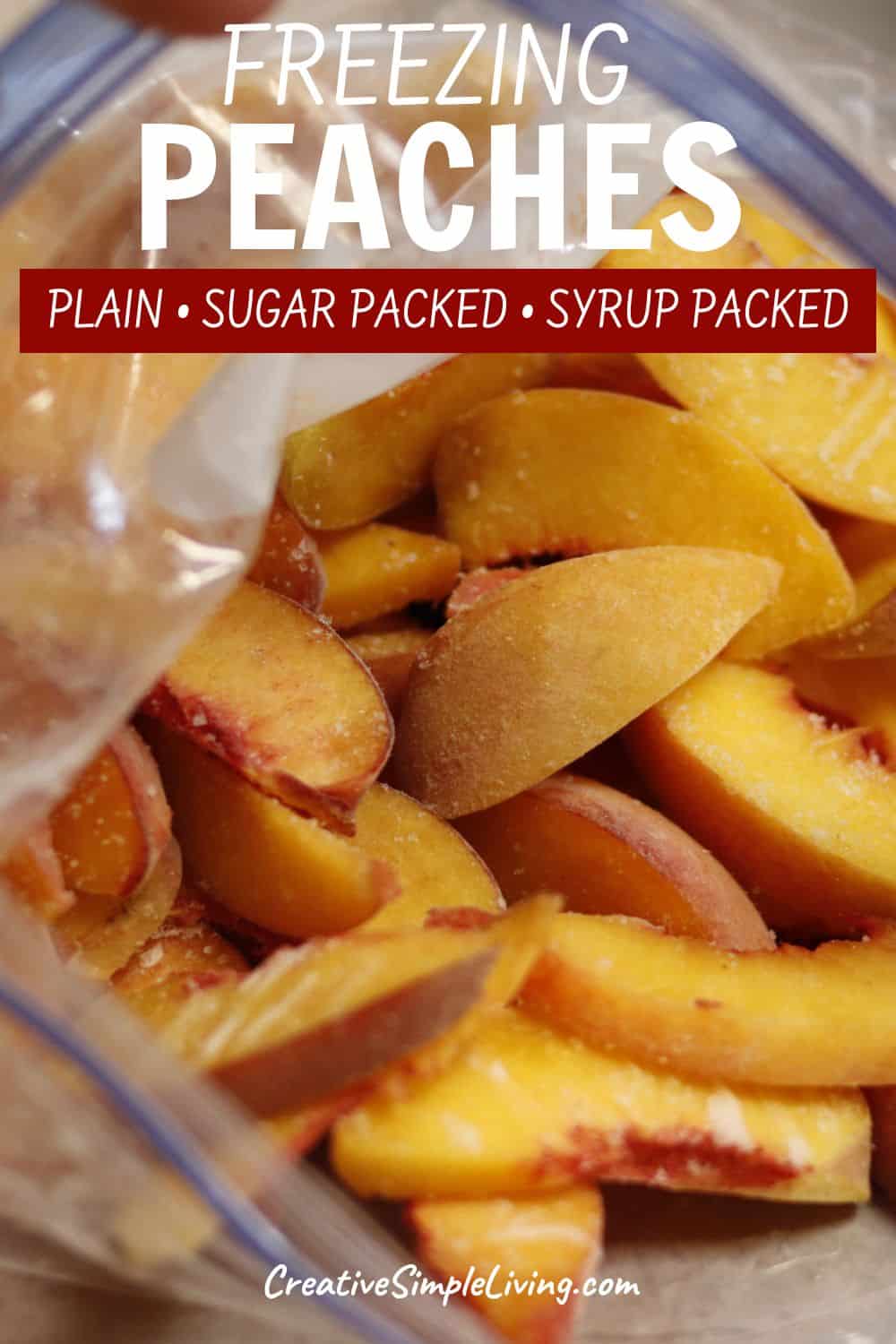 There’s not just ONE best way to freeze peaches. How you freeze fresh peaches will be determined by how you want to use them. We freeze the peaches slices several ways, some dry, some in sugar and some in syrup.