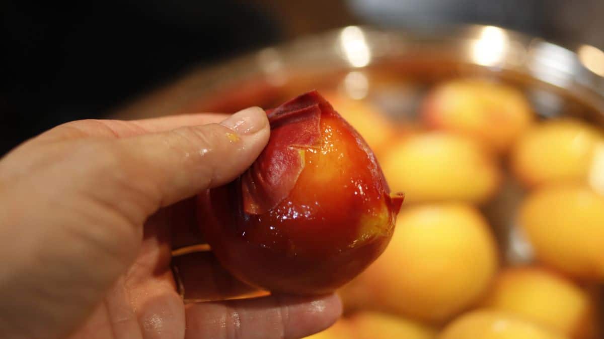 - Drop the peaches in boiling water and boil for 30-60 seconds